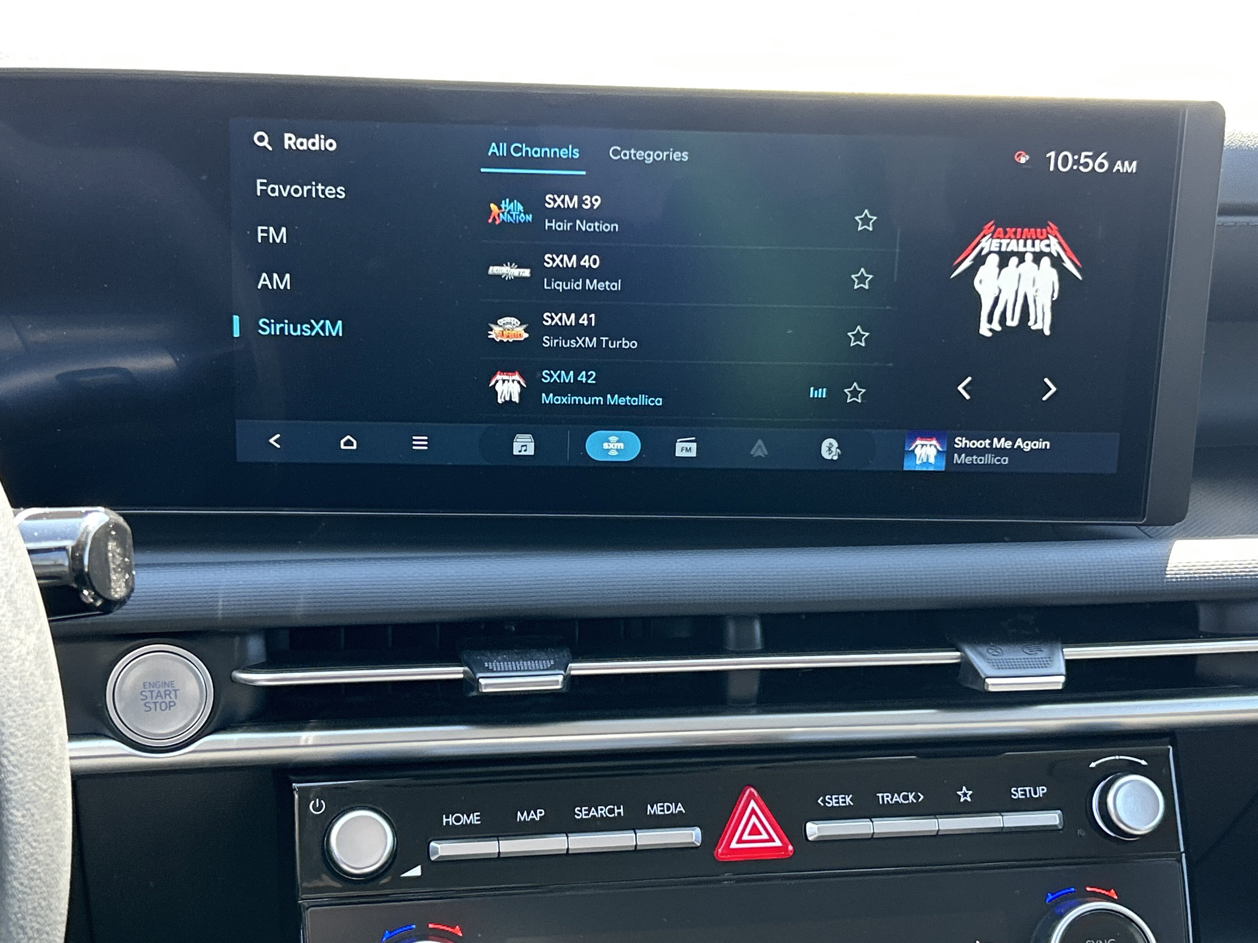 - Radio: AM/FM/HD Audio System -inc: 12.3" color touchscreen display, 6 speakers, SiriusXM satellite radio system (3-month trial subscription), wireless Apple CarPlay and Android Auto integration, controller OTA update capability, Blue Link connected car system and USB connectivity