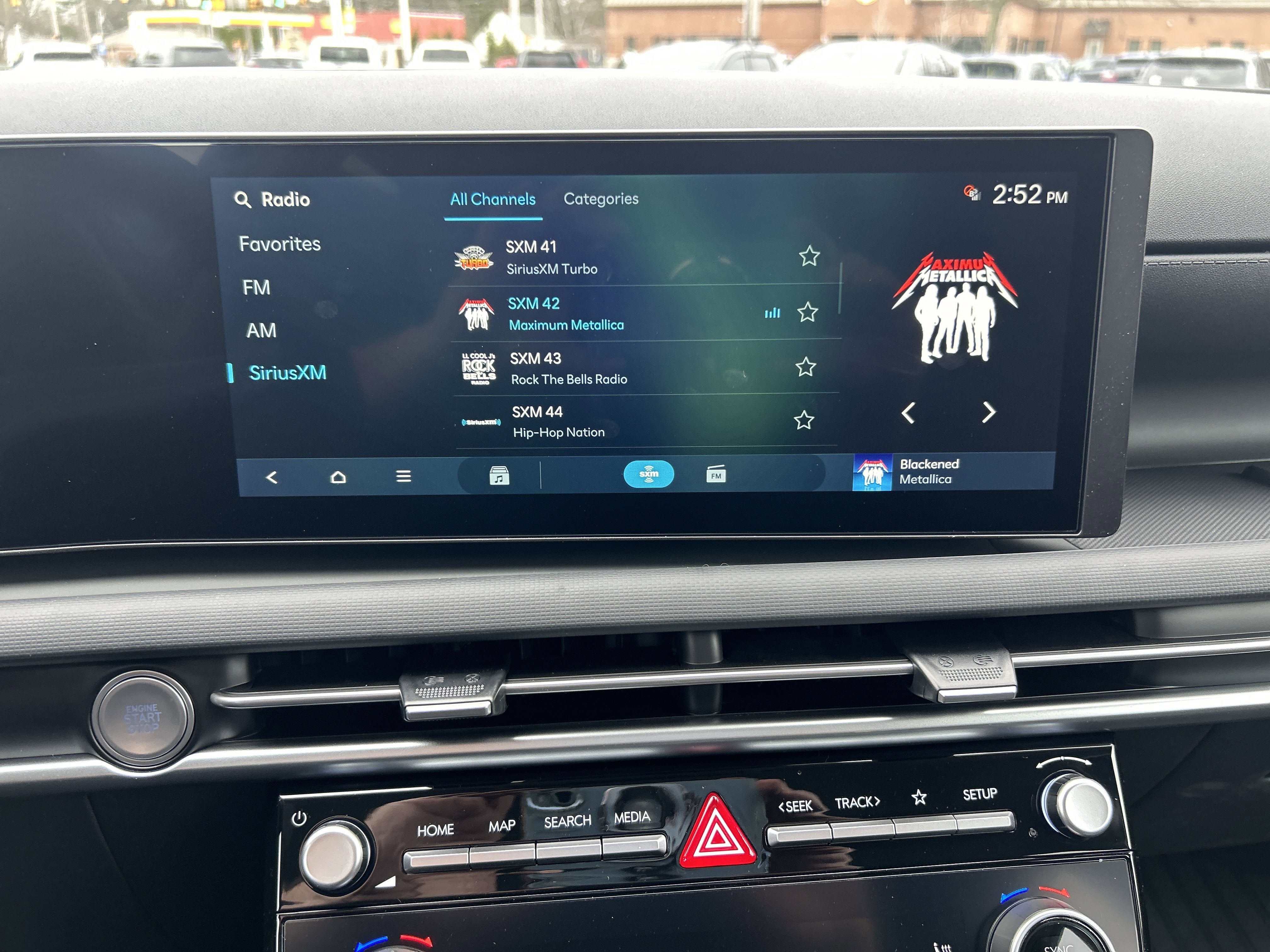 - Radio: AM/FM/HD Audio System -inc: 12.3" color touchscreen display, 6 speakers, SiriusXM satellite radio system (3-month trial subscription), wireless Apple CarPlay and Android Auto integration, controller OTA update capability, Blue Link connected car system and USB connectivity