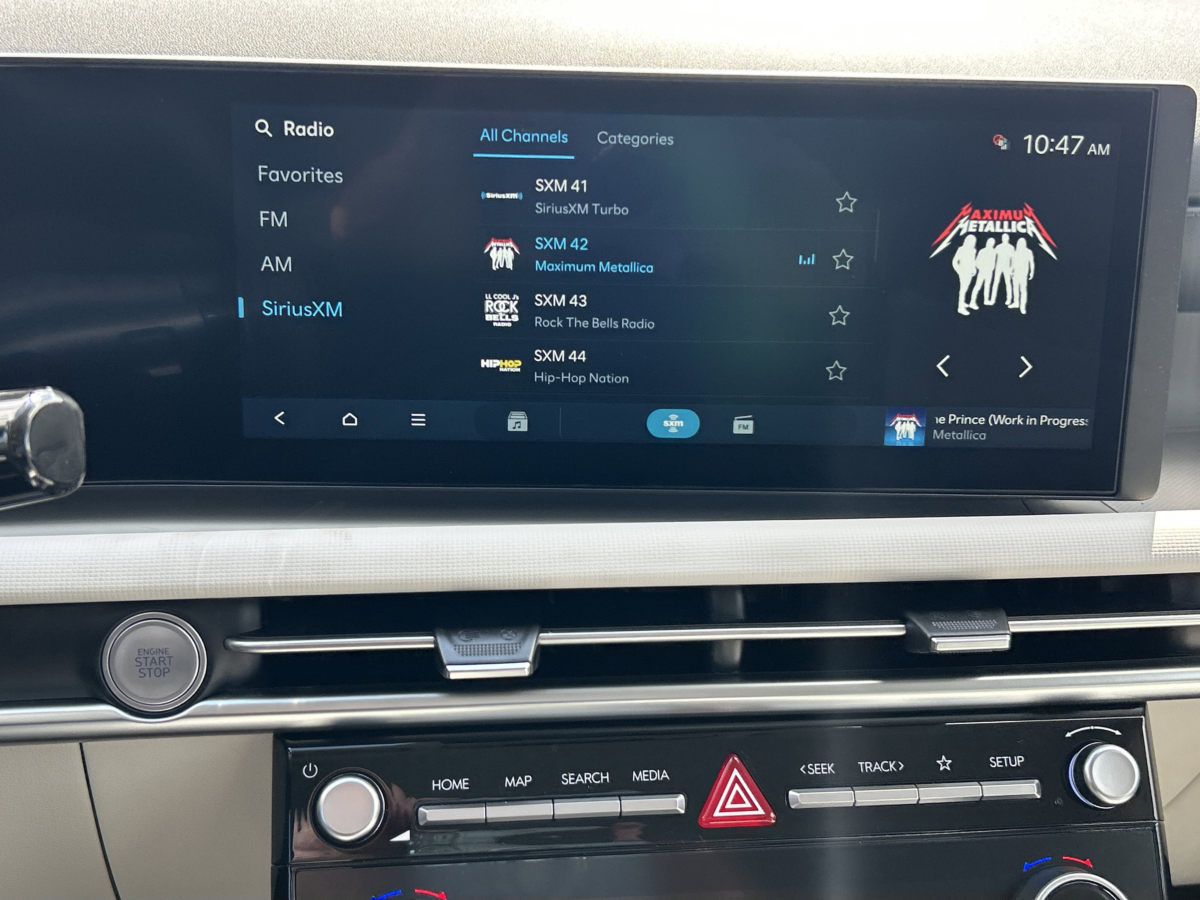 - Radio: AM/FM/HD Audio System -inc: 12.3" color touchscreen display, 6 speakers, SiriusXM satellite radio system (3-month trial subscription), wireless Apple CarPlay and Android Auto integration, controller OTA update capability, Blue Link connected car system and USB connectivity