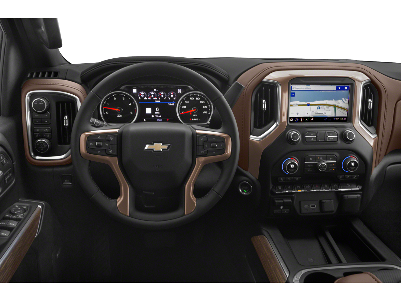 This Silverado is loaded with advanced tech that helps you stay in control. The 15-inch diagonal multicolor head-up display, rear camera mirror, bed view camera, HD surround vision, and advanced trailering system give you a clear view of what is happening around the truck and trailer. Wireless charging, 4G LTE Wi-Fi hotspot capability, navigation, HD Radio, Apple CarPlay, Android Auto, and the Bose premium sound system keep the cabin connected and refined.