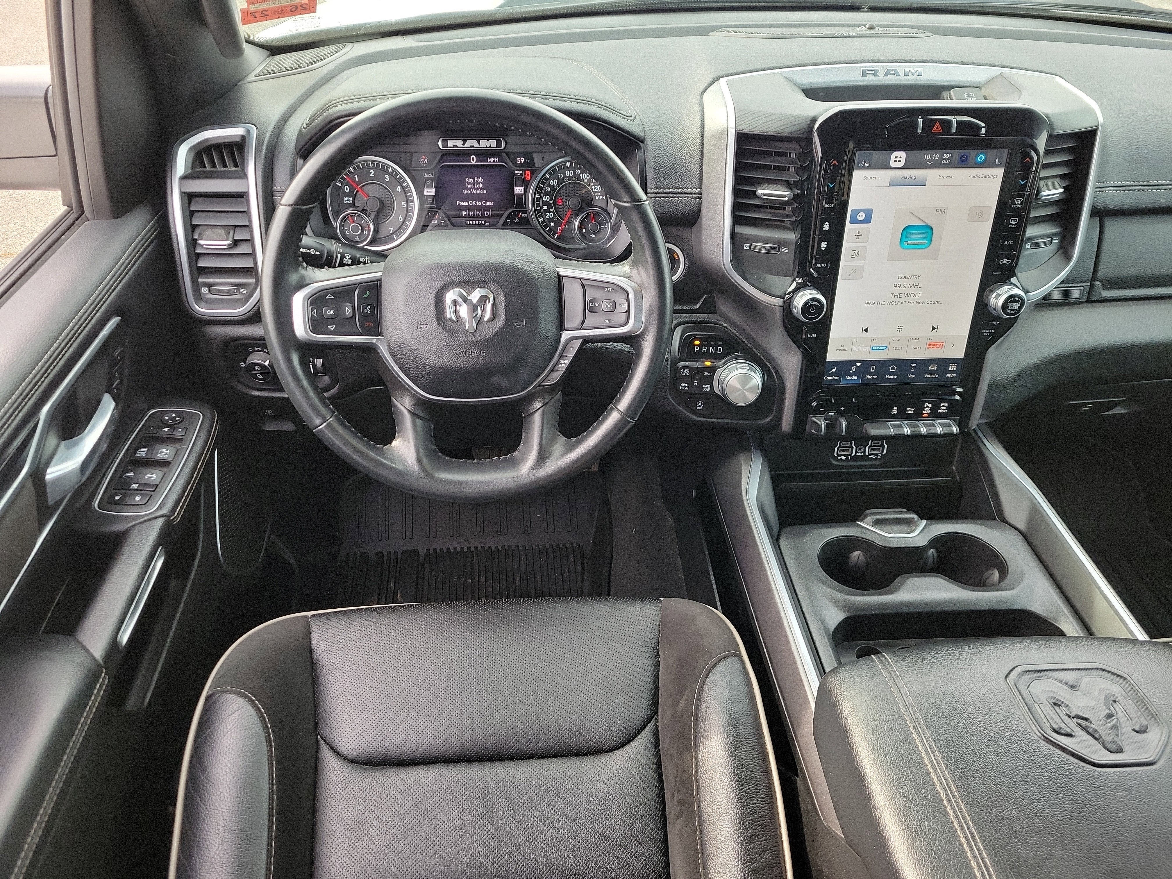 Slip inside and experience a cabin that feels like upscale rebellion. Leather-trimmed seating, heated and ventilated front seats, and active noise control wrap you in quiet luxury while that unmistakable HEMI growl reminds you this beast is alive. The Laramie Level 1 Equipment Group turns the cockpit into a command center anchored by a massive 12-inch touchscreen display with Uconnect 5 NAV, Apple CarPlay, Android Auto, and a thunderous 10-speaker premium sound system that turns country roads into concert halls.