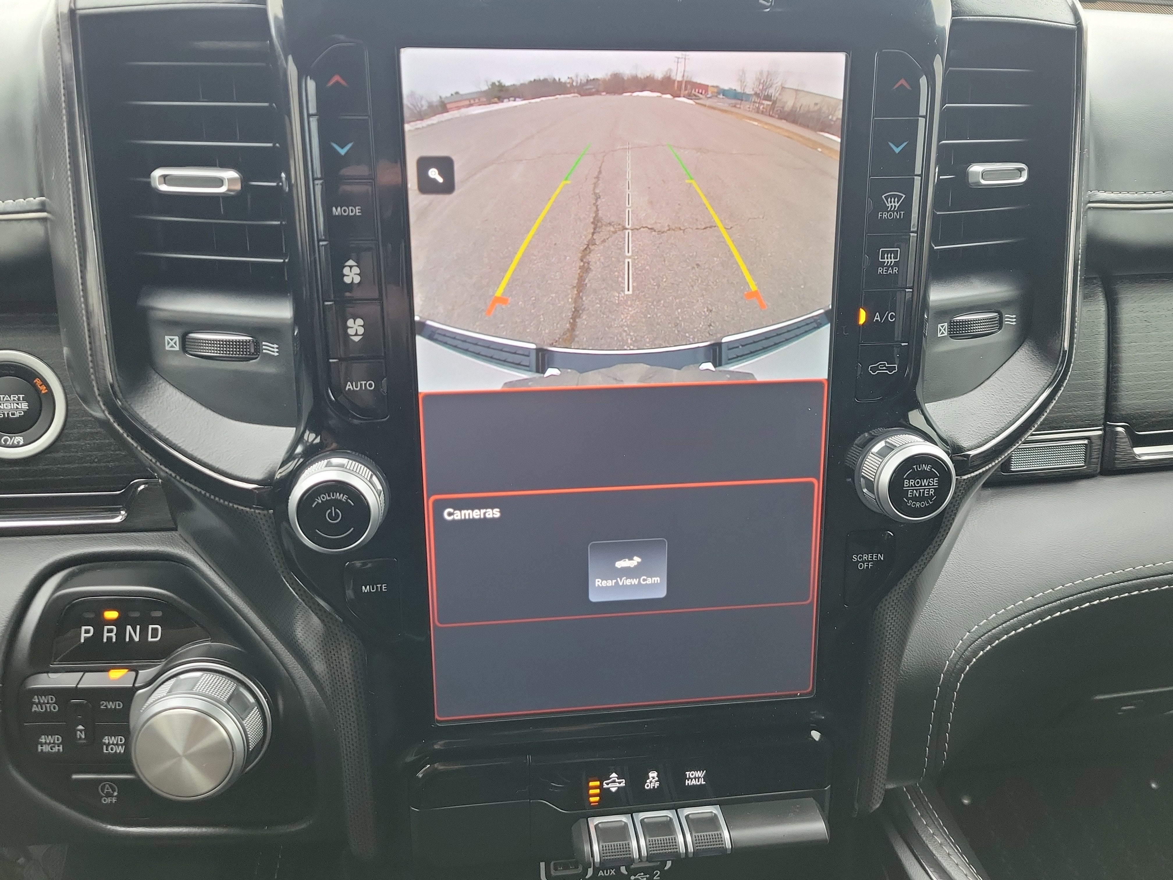 Then the tech hits you. Front and center is Uconnect 5 Nav with a 12.0 Inch Display, navigation, Apple CarPlay and Android Auto, audio memory, and a 10-Speaker Sound System that turns every onramp into your own music video. The Active Noise Control System and passive tuned mass damper help kill road noise, so all you really hear is the soundtrack and just enough HEMI rumble to keep you smiling. A full digital cluster, trip computer, and steering wheel controls make it feel more starship than pickup the second you get rolling.