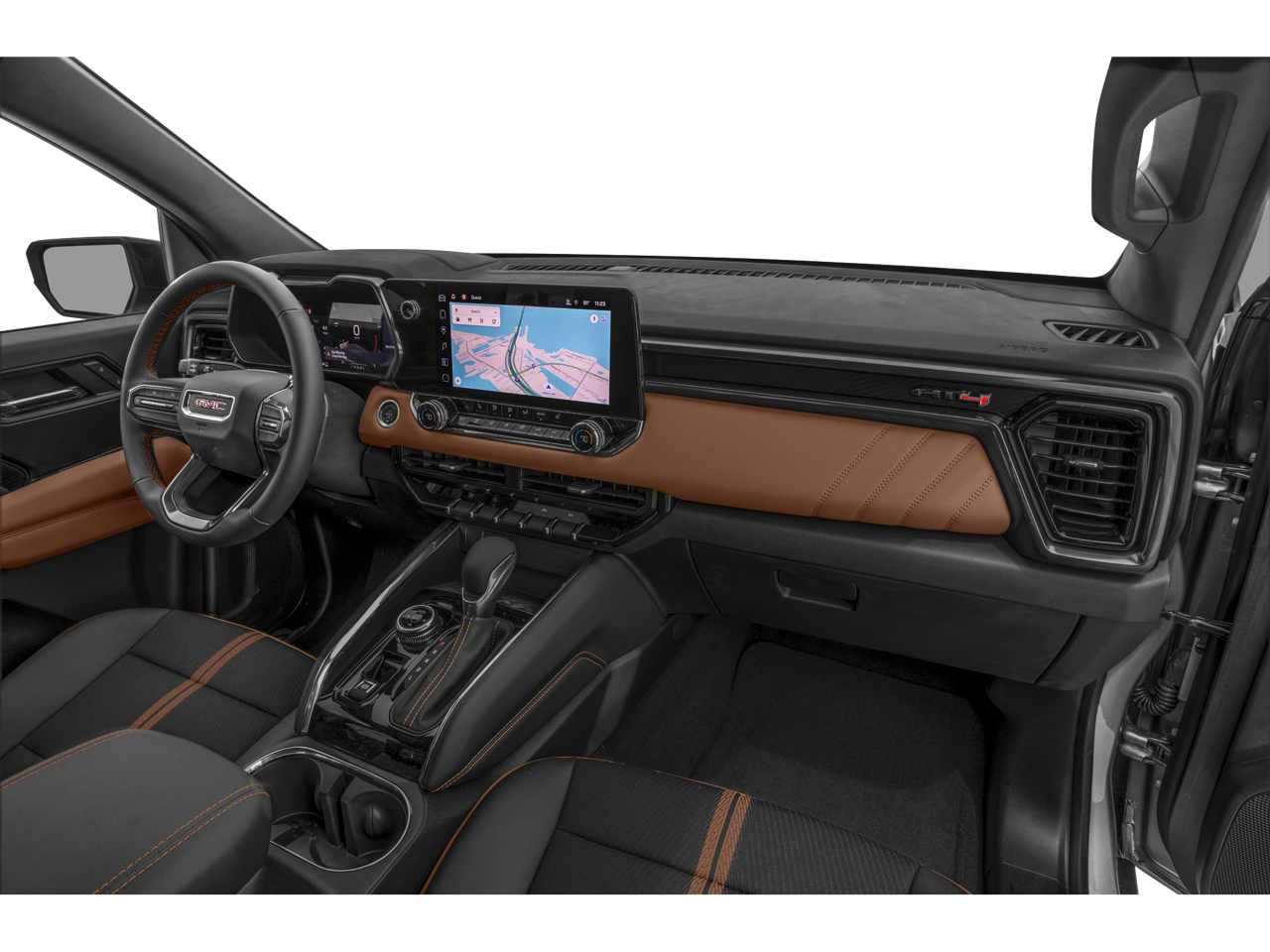 Tech is where this Canyon really separates itself. The 11.3 inch GMC infotainment system, Apple CarPlay, Android Auto, wireless smartphone projection, navigation, HD surround vision, adaptive cruise control, rear pedestrian alert, blind zone steering assist with trailering, forward collision alert, lane keep assist, and rear cross traffic braking create a truck that feels intelligent, connected, and confidently modern.